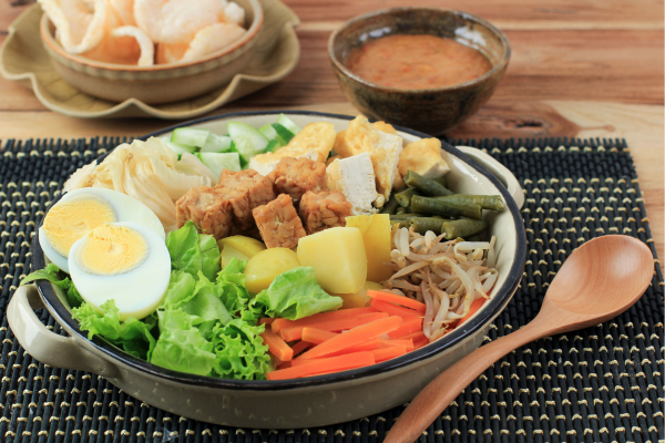 Kalau ingin menu makan siang yang flavorful dan mengenyangkan karena kaya serat, gado-gado atau pecel bisa jadi pilihan tepat. Gado-gado biasanya lebih lengkap dengan tambahan telur, tahu, tempe, dan kerupuk, sedangkan pecel cenderung lebih sederhana dengan cita rasa sambal kacang yang khas dan sedikit lebih pedas. Keduanya sama-sama praktis, mudah ditemui, dan cocok buat kamu yang ingin makan lebih ringan tapi tetap bikin kenyang sampai sore.
